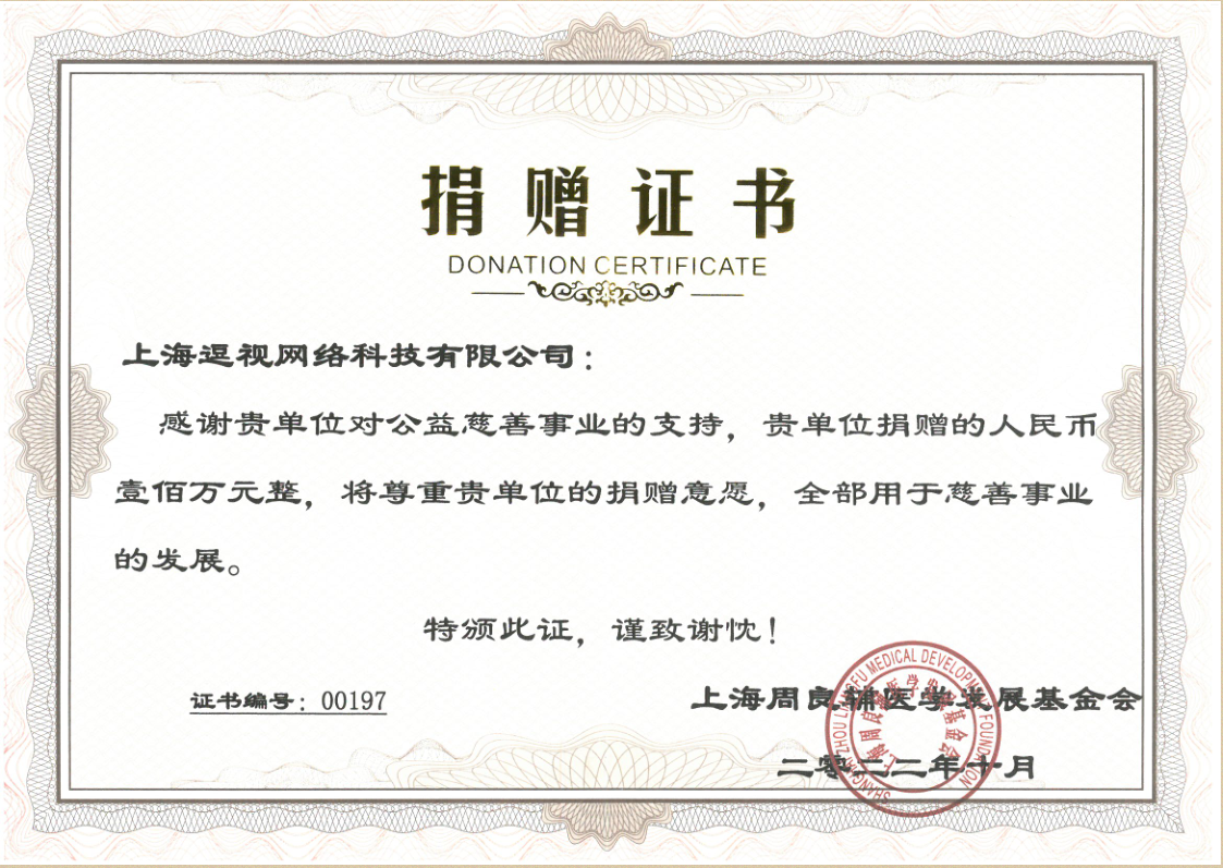 近日,恺英网络股份有限公司旗下子公司上海逗视网络科技有限公司,向上海周良辅医学发展基金会捐赠100万元,捐赠善款将用于支持医学科学研究、贫困患者资助及医学人才培养。